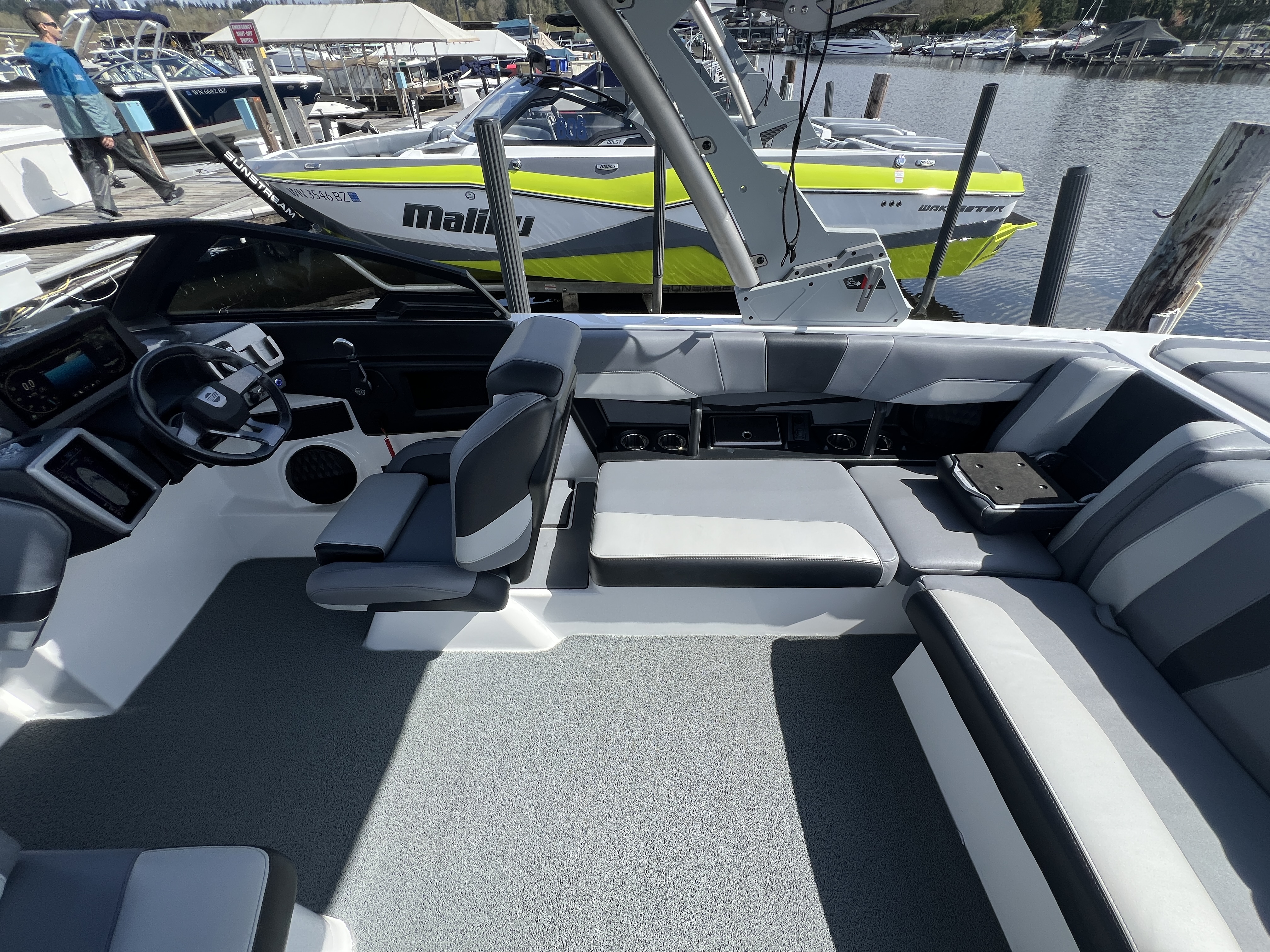 2023 Malibu 22 LSV. Powered by a Monsoon M5Di with 360HP with 385 Engine Hours. INCLUDES BRAND NEW MALIBU 22 LSV TRAILER!! The Malibu 22 LSV is built off the DNA of the most popular towboat of all time, the Malibu 23 LSV, now in a 22 foot package. A great boat for those looking to get into the watersports world or those looking to go big on their next set. Features include 12 inch touchscreen Malibu operating system, rotary joystick and dial, quad hard tank ballast, flip down side seats, dual battery set up w/ switch, PTM mirror, wake-view seating, auto fire suppression system, and more.